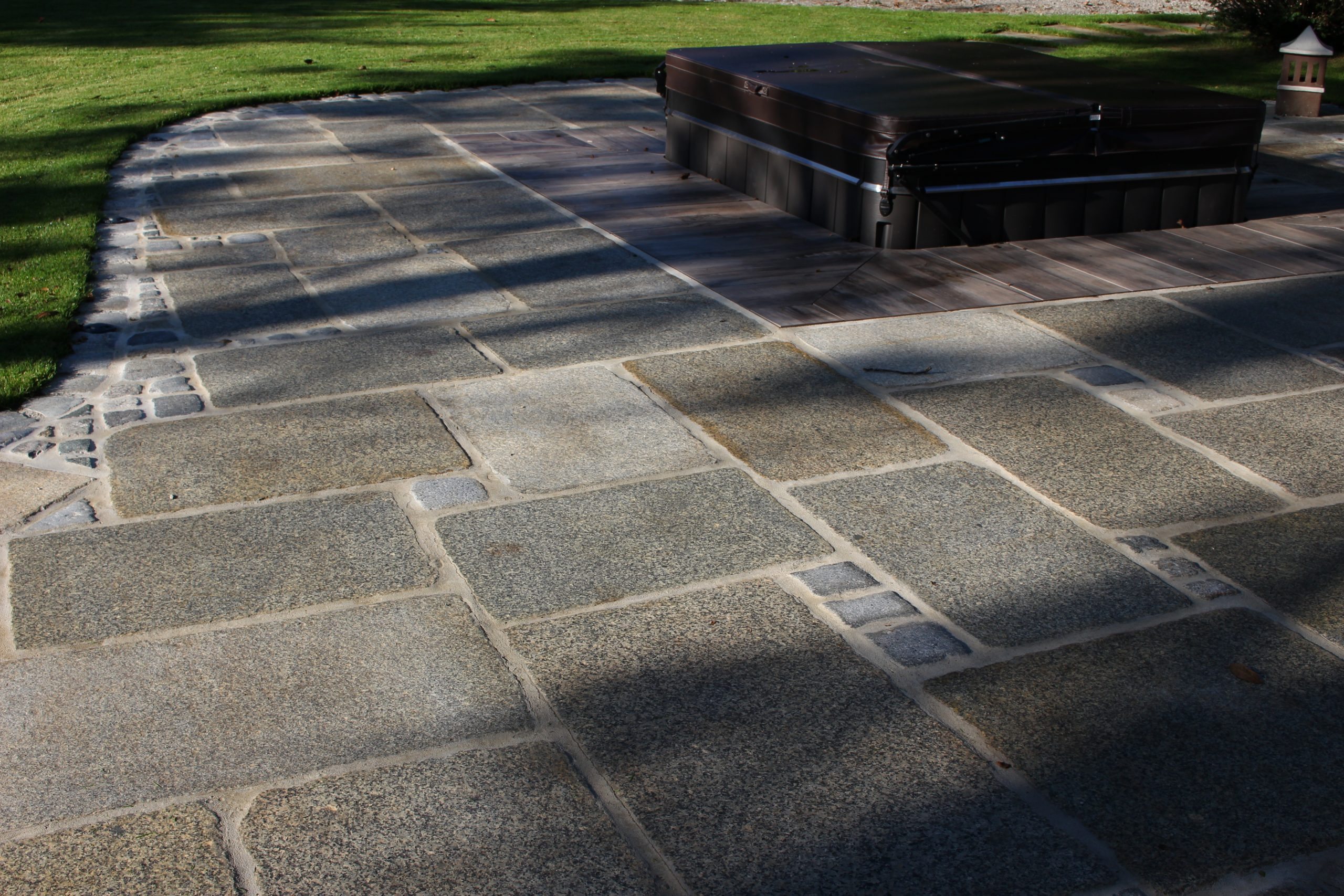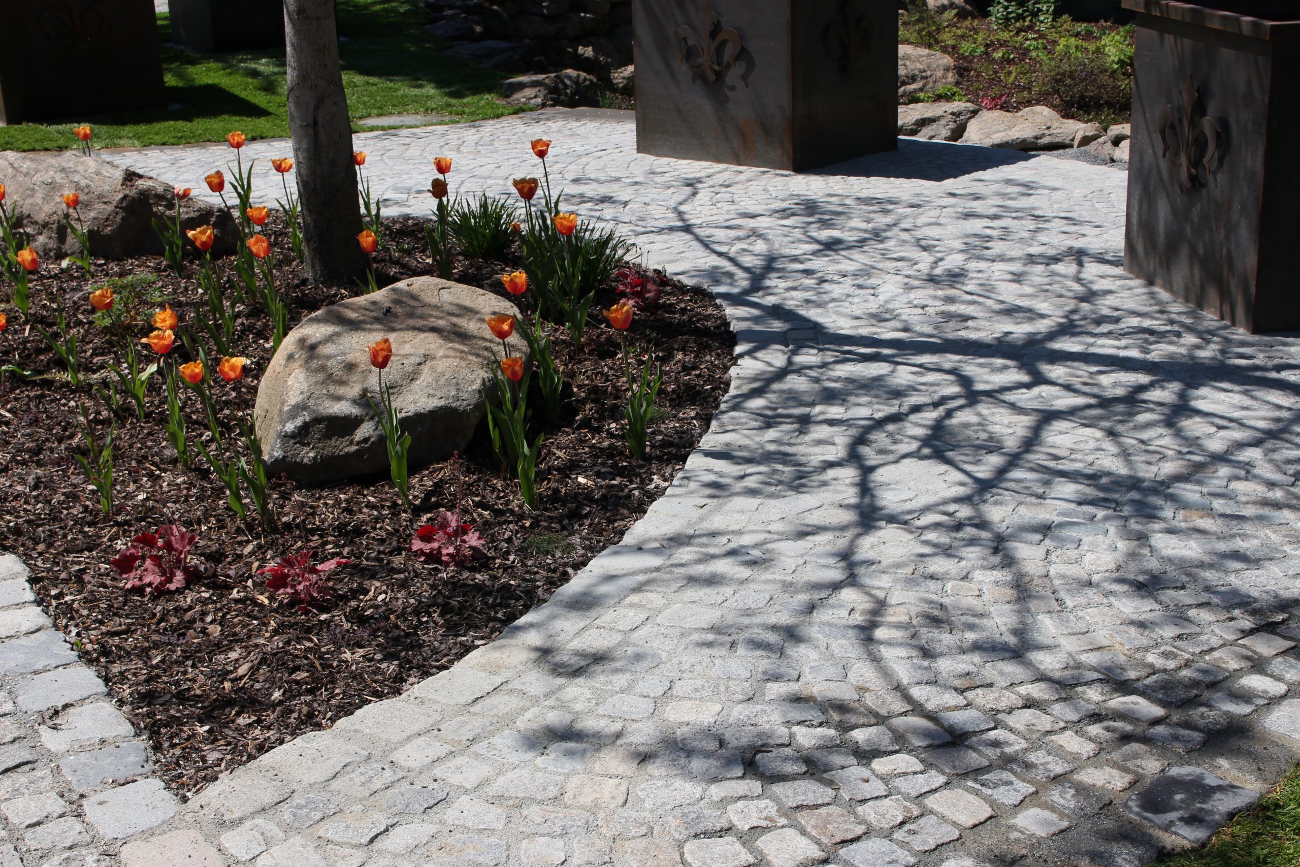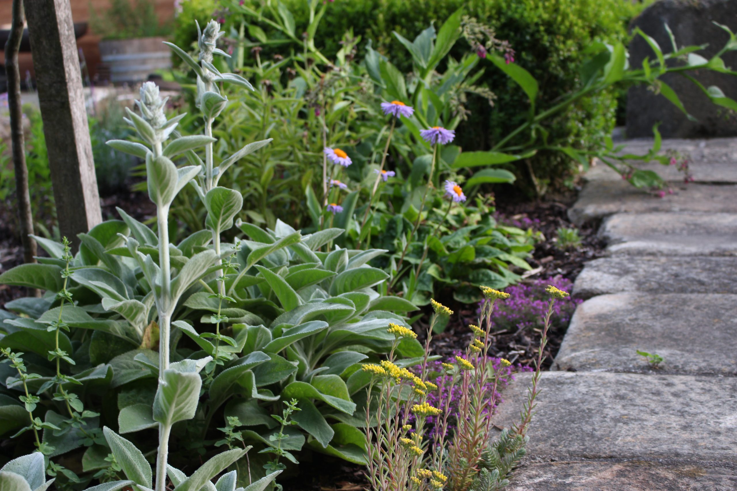 Lavendel im Eingangsbereich begrüßen nun jedem Besucher und beim Grillen sind mediterrane Kräuter sofort griffbereit! Die Pflasterung ist gezielt gewählt und erinnert an die Toskana, wo die Kunden es Lieben ihren Urlaub zu verbringen! In der Toskana schmücken Säulencypressen (Cypressus sempervirens ,Pyramentalis‘) die Landschaft. Diese funktionieren leider nicht im Süden Österreichs, deswegen haben wir als ähnliche Pflanzung uns für Säuleneiben (Taxus baccata ,Fastigiata‘) entschieden! Die Eibe ist in Österreich heimisch und trotzt dem Winter in dieser Region und bringt durch ihre Form ein wenig Toskana nach Österreich! Ein solitär gepflanzter Pinienbaum in Bon-Bon Form und Pampasgras machen den Mediterranen Garten nun komplett!