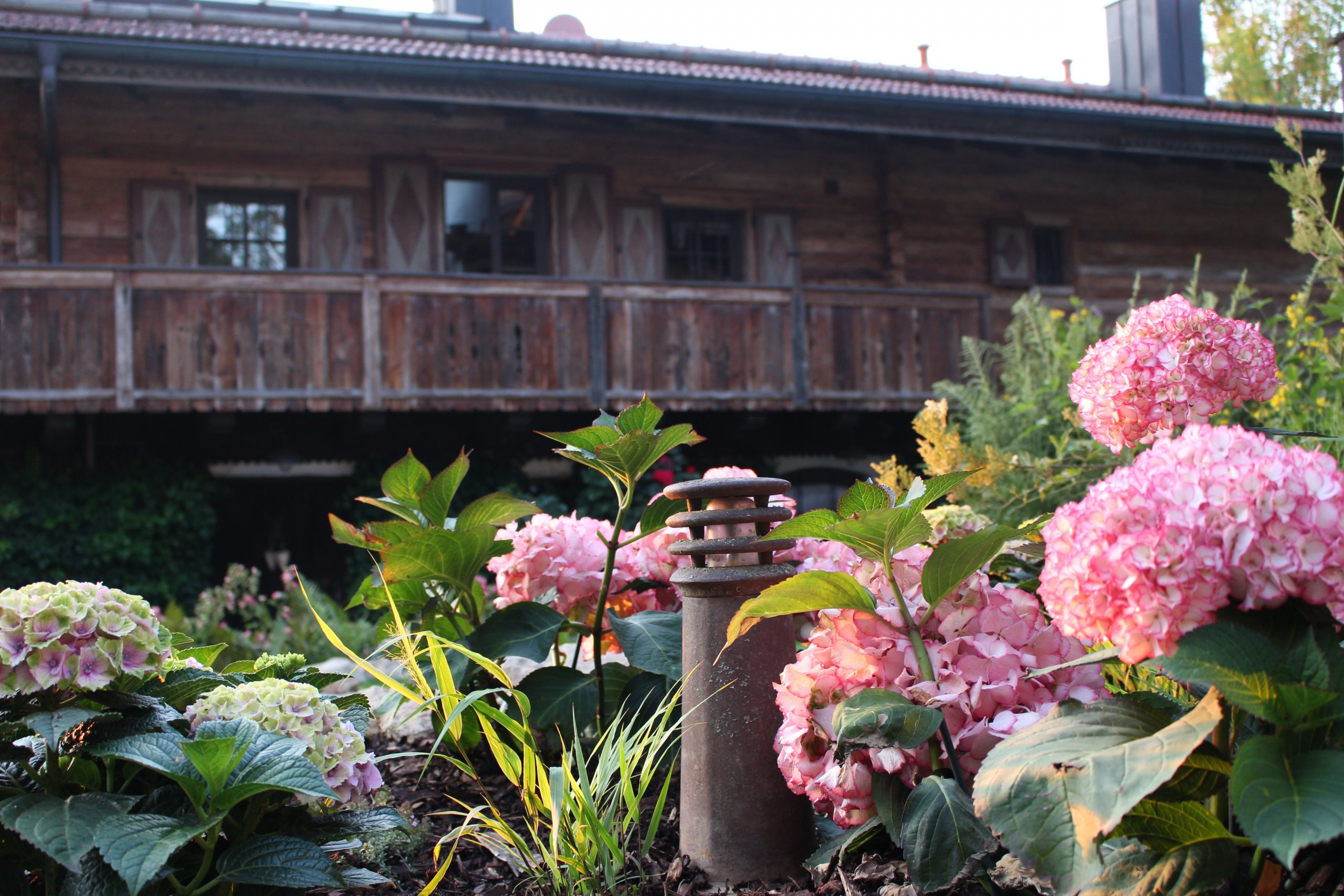 Ein bestehender Rosengarten wurde durch uns mit weiteren Rosenarten bereichert und durch eine sorgfältig ausgewählte Unterbepflanzung aufgewertet, was nicht nur die Ästhetik steigerte, sondern auch die Pflegeleichtigkeit verbesserte. Die Installation einer unterirdischen Tropfbewässerung stellt eine ideale Lösung für die Rosen dar, da diese keine Feuchtigkeit von oben vertragen. Zudem sorgen aufgestellte Laternen mit warmem Licht dafür, dass der Rosengarten auch bei Nacht in einem einladenden Ambiente erstrahlt.